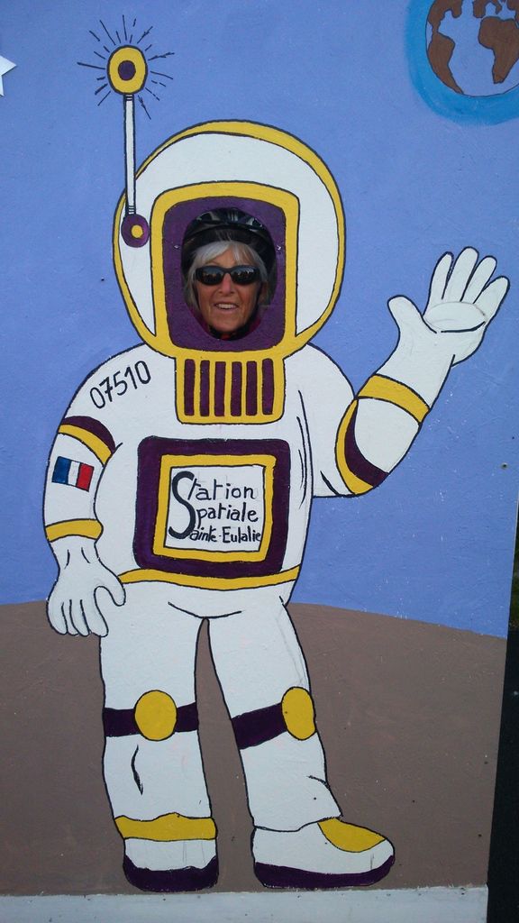 Arrët à Ste Eulalie, ou l'ambiance est à la conquête spatiale, on y voit même des cyclotes- cosmonautes.